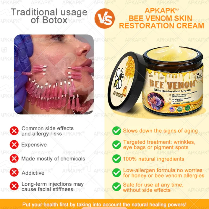 APKAPK® Bee venom Comprehensive Cream addresses all the problems associated with sagging skin, wrinkles and more!